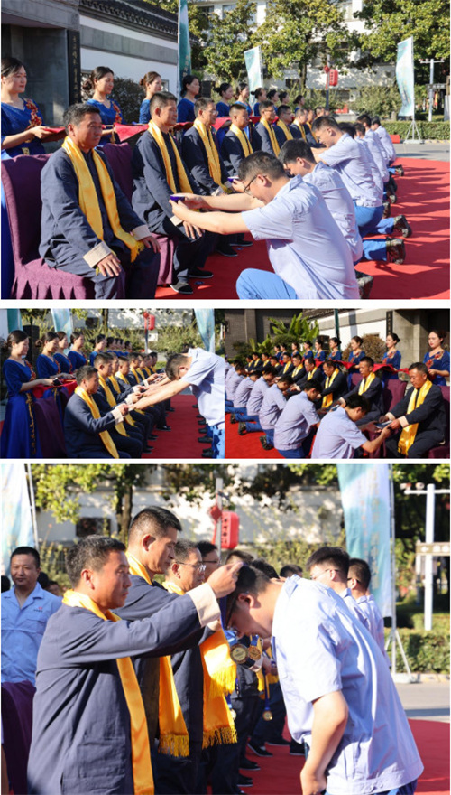 “一拜感念師恩,傳承匠心;二拜技藝超群,通古博今;三拜傳承酒脈,報(bào)國(guó)為民。”……洋河人重師道,尊師道,以弦歌不輟、薪火相傳的精神,表達(dá)對(duì)綿柔品質(zhì)的不懈追求,師徒間的情誼在拜師儀式中建立、沉淀,既有同事間的相互合作,也有前輩對(duì)后輩的幫扶。