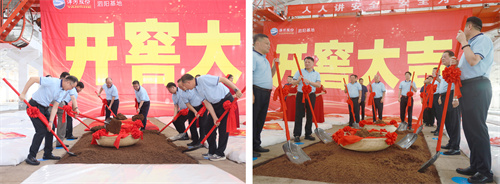 吉時(shí)一到,一面“開窖大吉”巨幕從池口上方倏然拉開,鄭步軍、張德佳邀請市場嘉賓揮锨起醅,在一聲聲激揚(yáng)的吉祥話中,基地22800口窖池全面進(jìn)入頭排酒開窖生產(chǎn)階段。